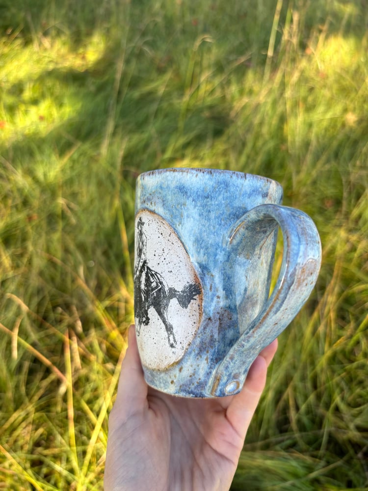 12 oz. Handmade ceramic stoneware mug with custom silkscreen design