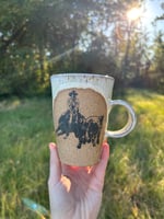 12oz. Handmade Ceramic Stoneware mug with custom silkscreen design