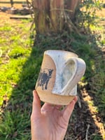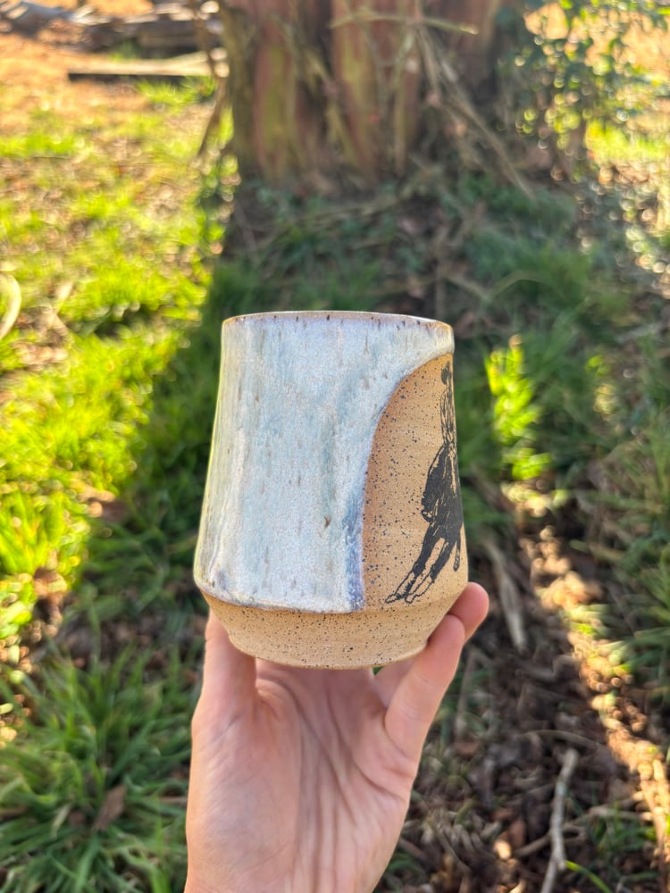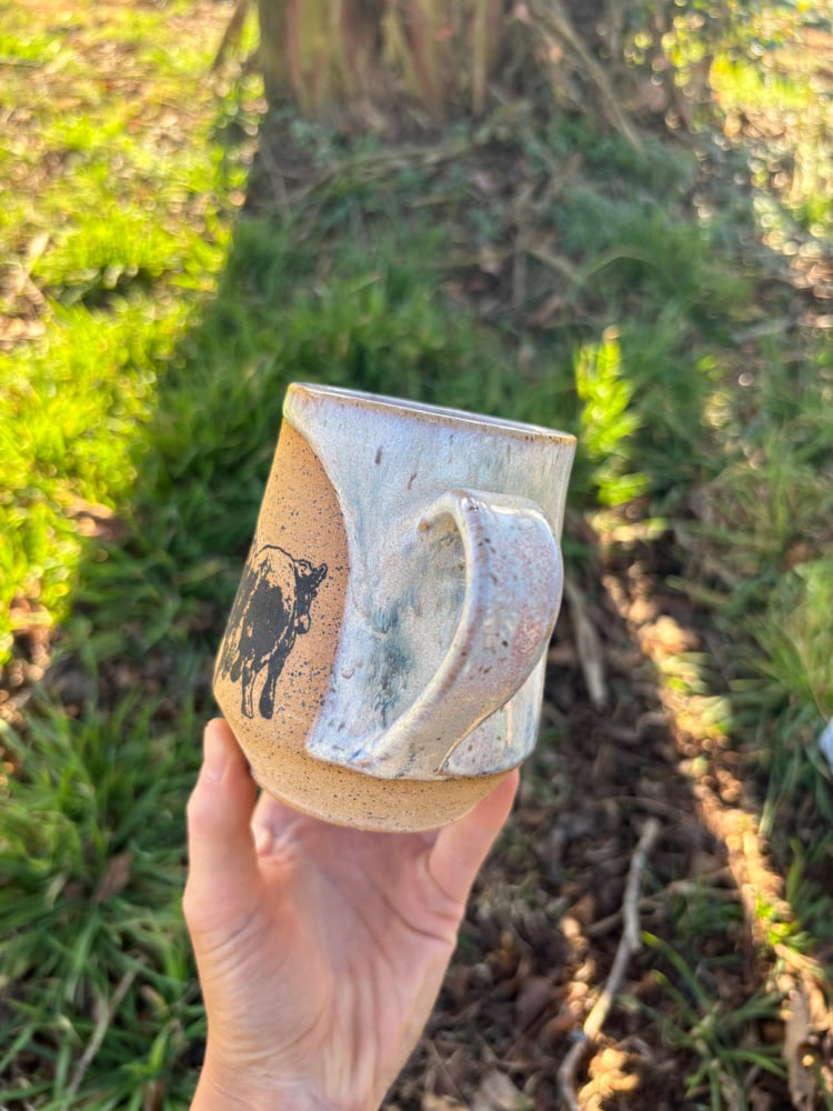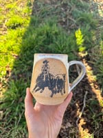 10 oz. Handmade stoneware mug with cowboy cutter custom silkscreen