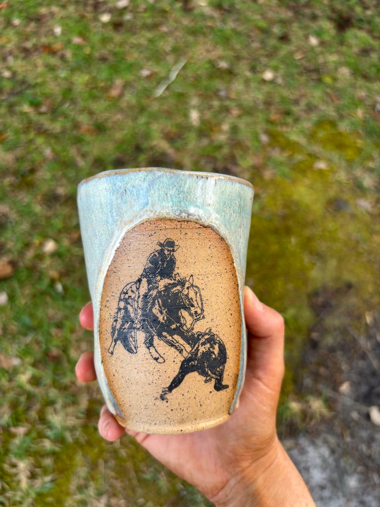 12 oz. Handmade ceramic stoneware mug with custom silkscreen