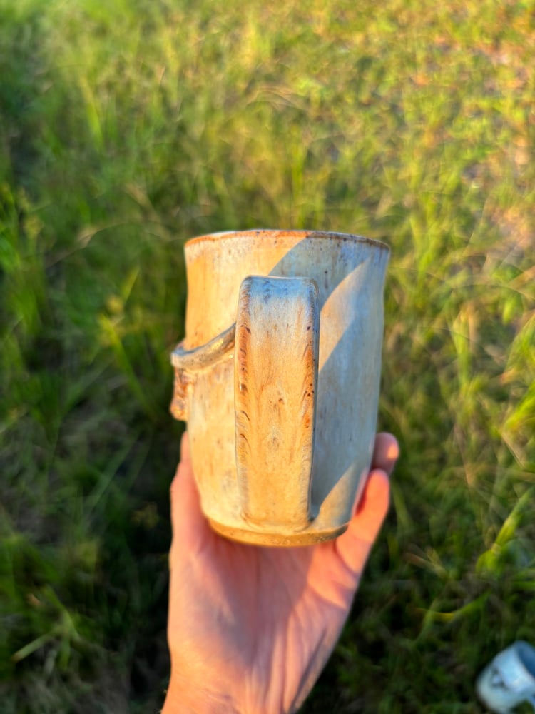 14. oz handsculpted, handpainted longhorn ceramic stoneware mug