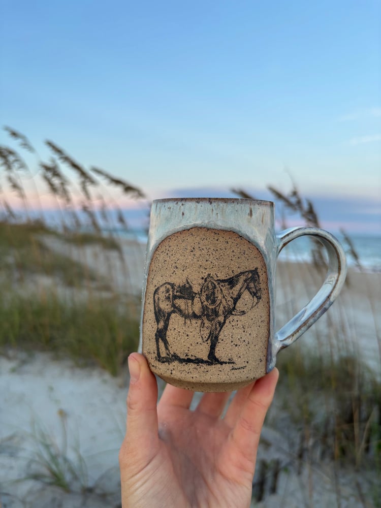 12 oz. Handmade Stoneware mug custom western pony silkscreen