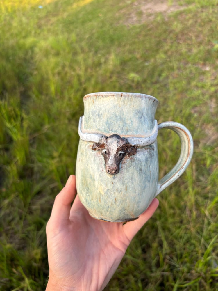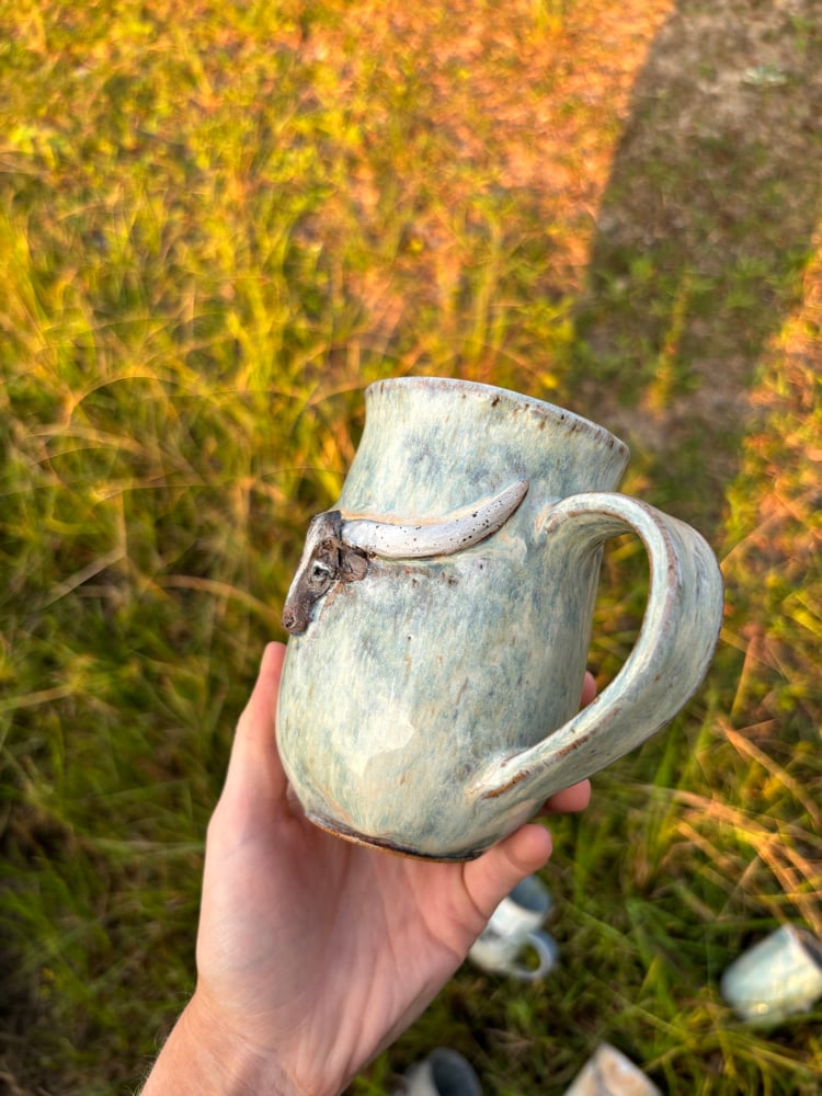 13oz. Handpainted handsculpted ceramic stoneware mug