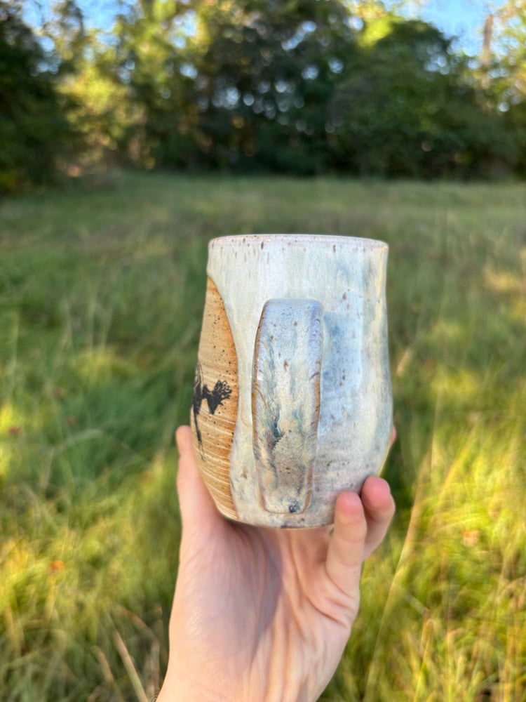 Set of two 10 oz. Handmade ceramic stoneware mugs out of marbled clay