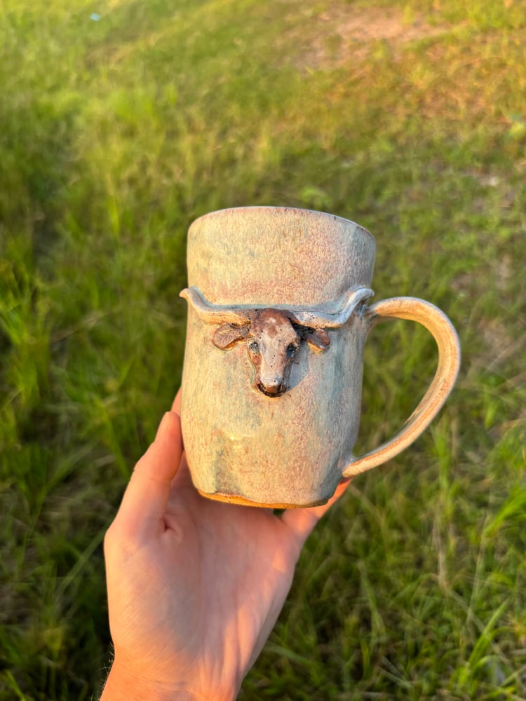 12oz. Handsculpted hand painted ceramic stoneware mug