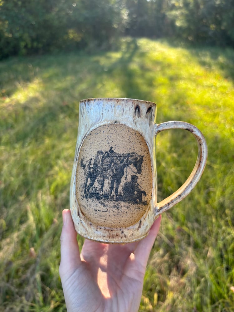 13oz. Handmade ceramic stoneware mug with custom silkscreen design