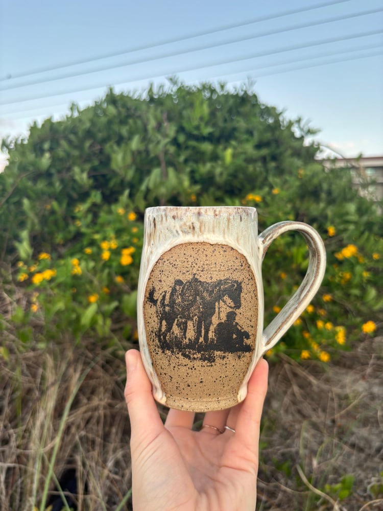 10-12 oz. Handmade one of a kind stoneware mug, dishwasher/microwave safe with custom silkscreen
