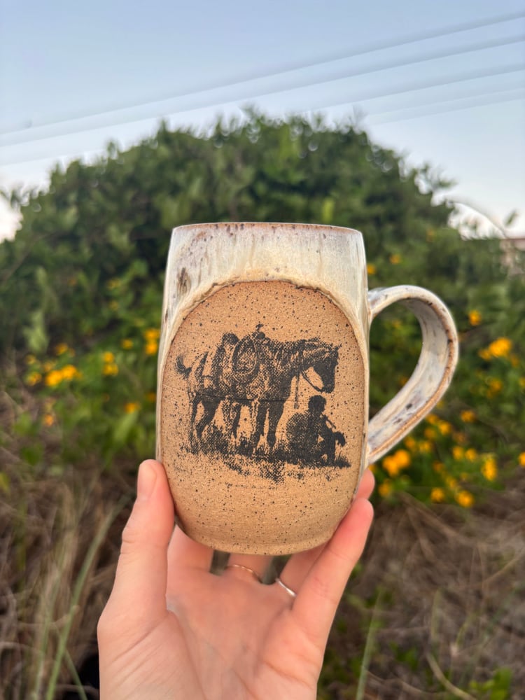 8-10 oz. Handmade one of a kind stoneware mug, dishwasher/microwave safe with custom silkscreen