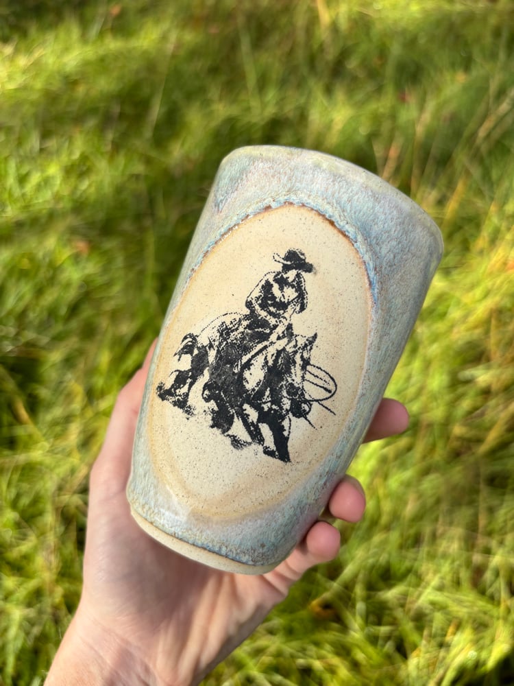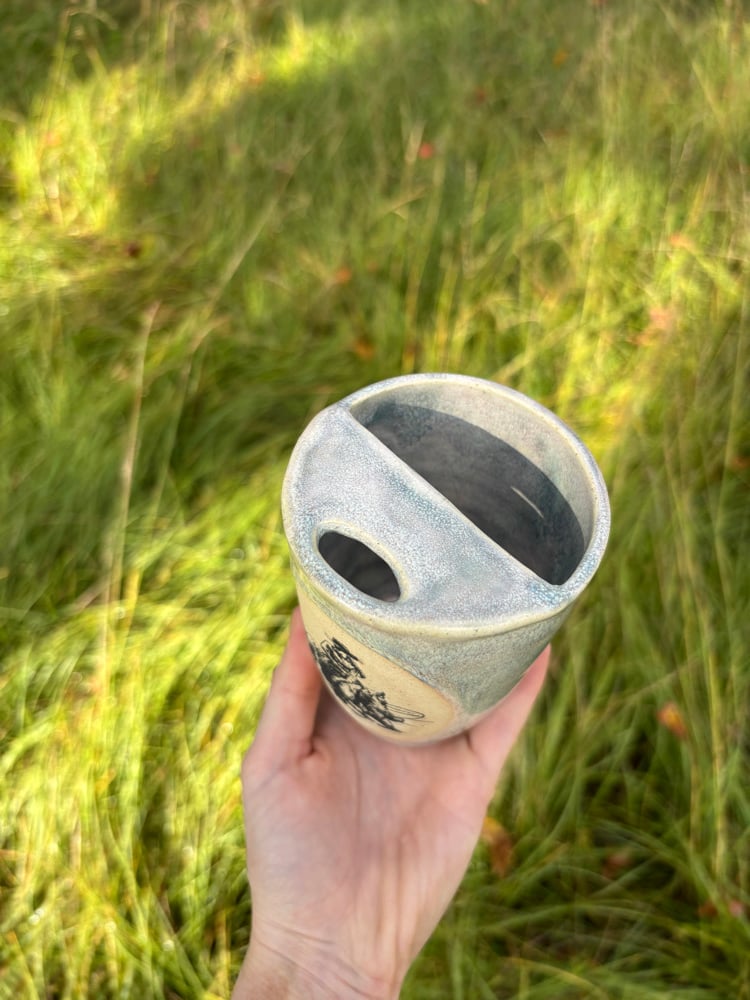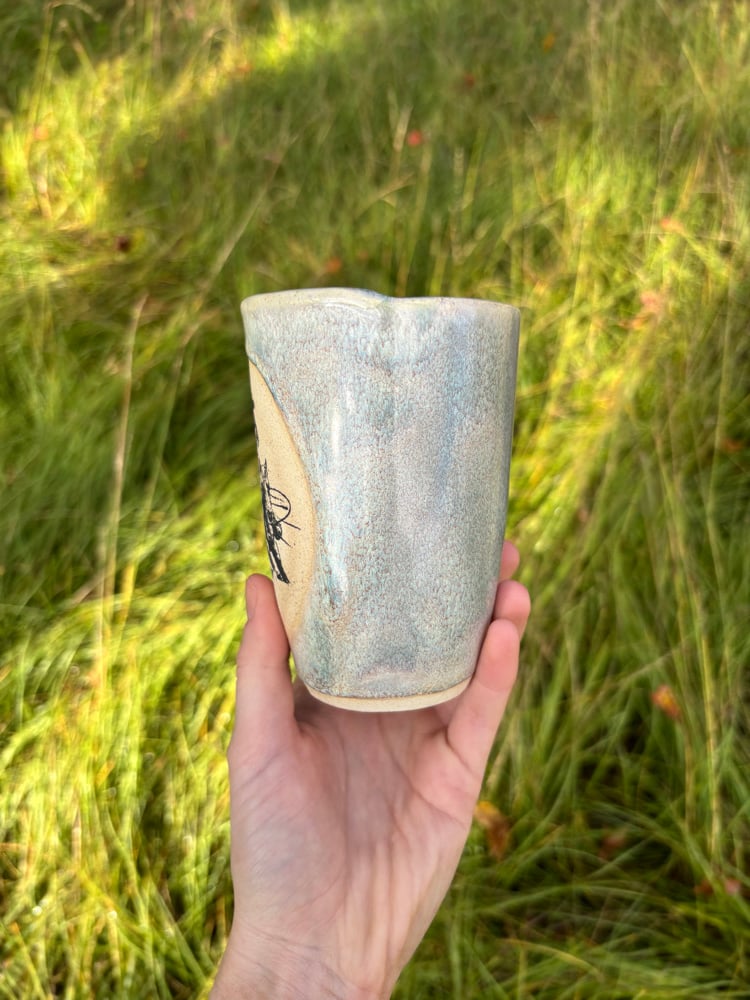 10 oz Handmade ceramic stoneware mug with custom silkscreen design