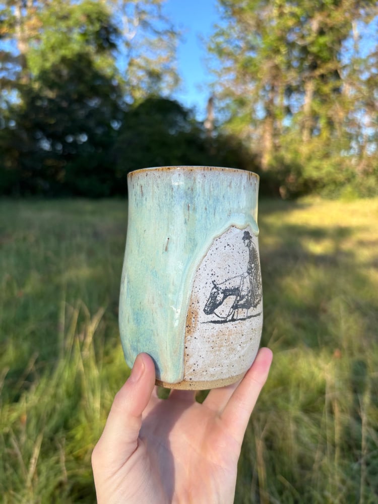 12oz. Handmade ceramic stoneware mug with custom silkscreen